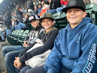We found Mason street. We all decided to put a foot in for the picture and Kyson put a wheel in since the scooter was his best friend during this trip.